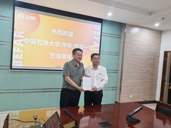 7月2日下午,张永宁一行首先来到滨化集团股份有限公司。在参观完企业文化展厅后,双方就人才培养、科研合作、实习实训及企业员工培训等话题进行了广泛而深入的探讨。滨化集团副总裁刘洪安详细介绍了公司的生产运营情况、技术创新成果及未来发展规划,并对化工学经理期以来为公司输送高质量人才表示感谢。张永宁书记介绍了学院的基本情况、学科优势及近年来在科研和教学方面取得的成果,并希望双方在现有合作基础上,进一步拓展合作领域,实现优势互补、共赢发展。最后,张永宁向滨化集团副总裁刘洪安赠送了威廉希尔体育(华东)校史。