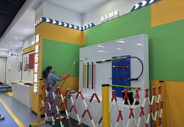 讲解员展示电击安全问题 邱泽子俊摄
