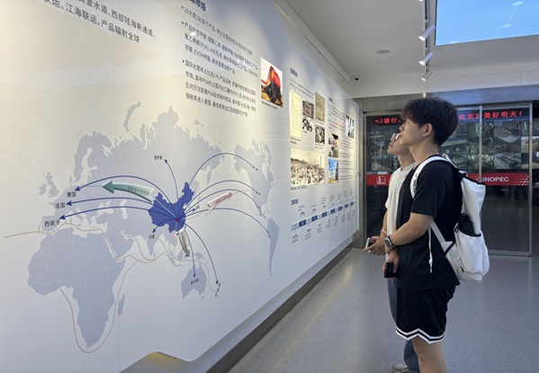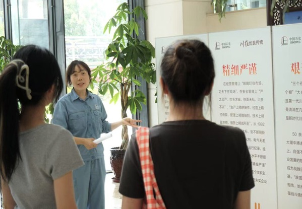随后,实践队来到现场中控室。调度室值班主任朱伟向队员们全面介绍了公司的发展脉络:从 1973 年国家计委批复建设,到 2024 年深入学习贯彻党的二十届三中全会精神,全面深化体制机制改革,川维化工有限公司已成为全国四大化纤基地之一。经过 50 多年的发展,如今,川维化工有限公司是国内最强最大的以天然气为原料的特色精细化工和新材料企业。中控室两侧墙上 “坚持创新引领,实施‘一个基础、四朵金花’发展战略,奋力打造世界领先特色精细化工和新材料公司” 的口号,传递出企业的发展愿景与决心。访谈中,针对实践队队长邱泽子俊提出的老员工就业问题,朱伟主任给出了恳切解答:“公司在招聘时,更加看重应聘者的学习能力和为人品质。”