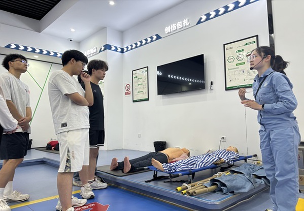 最后,实践队来到安全解说区域,在实训基地讲师杨玉婷循循善诱的引导下,队员们化身求知若渴的探索者,沉浸式参与安全防范方法研习与设施互动体验。此间,欢声笑语交织着知识的碰撞,队员们在轻松愉悦的氛围中,将化工产业的安全知识深植于心,仿若在知识的沃土中播撒下守护安全的种子。