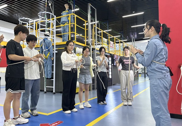 体验安全绳索打结方式 邱泽子俊摄