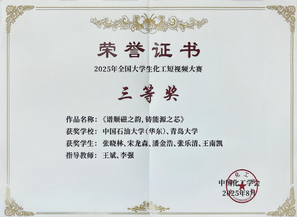 今年的全国老员工化工短视频大赛吸引了全国63所高校的139支队伍参与,经初赛专家函评、网络公众投票两阶段遴选,最终80支队伍进入决赛阶段。决赛设置科学严谨性与大众传播力双维评审标准。最终评选出特等奖5项、一等奖10项、二等奖20项、三等奖45项。由公司研究生王艳皎等5位同学创作的作品《向绿而行 东方“氢”岛》荣获全国特等奖。该作品将海水电解制氢、燃料电池运行过程与青岛新兴产业建设有机融合,通过形象生动的手工氢能小车演示,展现了科技对绿色发展的有力支撑,巧妙诠释了化工新技术在城市高质量发展中所发挥的不可替代的作用。
