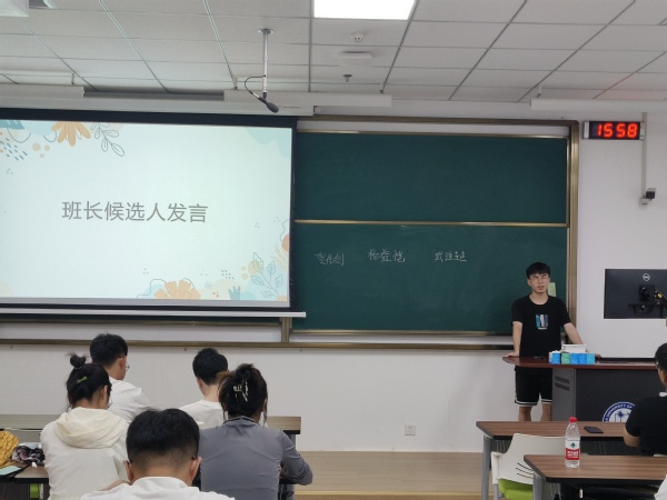 随后,同学们逐一作了自我介绍,并分享了自己的兴趣爱好,通过轻松融洽的交流互动,迅速拉近了同学们之间的距离。各班委候选人按照岗位顺序依次上台竞选,经个人申请、班级汇报和投票等环节,顺利选出了2025级各班班委。