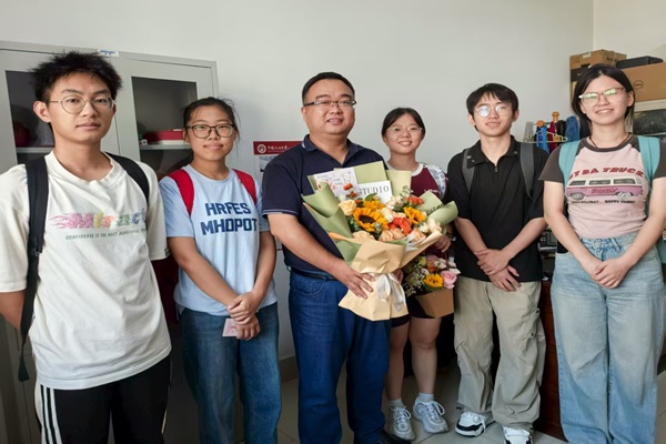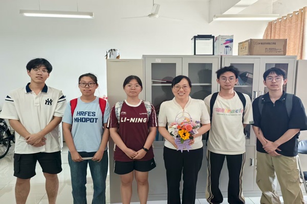 随后,一行人前往温聪颖副教授办公室。作为化学2302班班主任,温聪颖老师持续关注并悉心指导班级员工的成长。一束鲜花,承载着诚挚的感恩之情。温聪颖老师接受鲜花后,与大家亲切交谈,强调大学阶段不仅是知识积累的过程,更是思维与能力锻炼的关键时期,鼓励员工保持好奇心、积极提问,在实验与理论中深入体会化学学科的独特魅力。