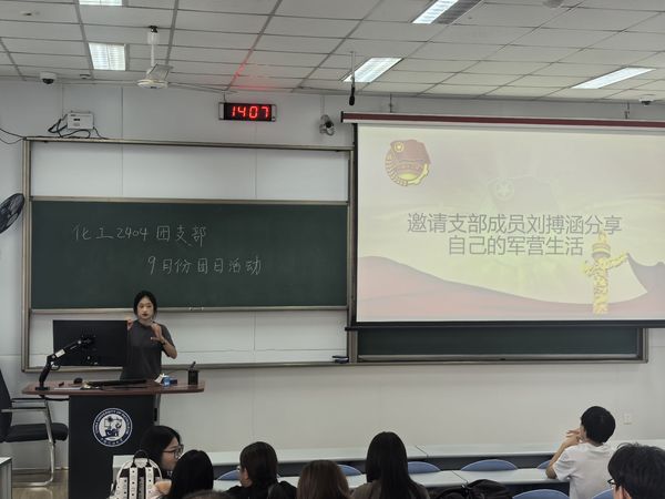 本次活动围绕“以史为鉴、砥砺前行”核心,精心设计两大特色环节,让红色教育更具感染力与代入感。活动开篇,支部成员刘搏涵作为有军队经历的青年代表,以“军营里的红色传承”为主题分享自身经历。她结合军营中日常训练、工作学习等片段,讲述了在严格纪律与红色文化熏陶下,对“家国责任”“历史使命”的深刻理解。