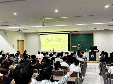 就业规划指导结束后,薛慧老师以“硕博生心理健康守护指南”为主题,通过轻松有趣的互动环节,引导同学们关注心理健康的重要性。薛老师深入浅出地分析了研究生阶段可能面临的心理压力来源及其影响因素,并着重讲解了当出现心理困扰时,如何进行自我调适与有效疏导。她鼓励同学们主动学习心理知识,积极寻求支持,建立健康的生活方式和积极的心态,共同营造和谐互助的成长环境。