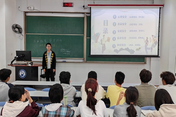 第一,心理委员李长鑫引导员工正视环境适应、学业压力等心理挑战,学习情绪管理与求助方法,促进心理健康成长;第二,文艺委员王冉讲解食品污染类型及应对措施,提升饮食安全意识与维权能力;第三,体育委员李昊轩结合校园事故案例,强调交通安全,呼吁杜绝分心行为、遵守交规;第四,生活委员薛琳冰聚焦宿舍消防,详解违章电器危害、火灾预防及逃生技能,强化安全责任意识;第五,班长沈钊霆从个人信息保护入手,普及防诈骗知识,提醒警惕网络风险,增强识别能力。