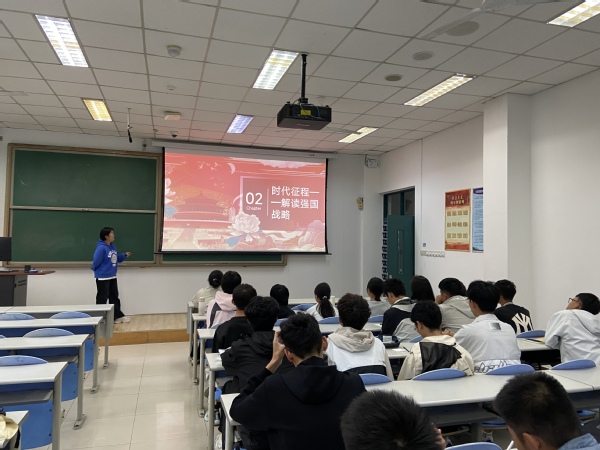 班会伊始,一段精心剪辑的短片《从站起来到富起来的伟大飞跃》拉开帷幕。从艰苦卓绝的抗日战争到开国大典的庄严时刻,从“神舟”飞天的逐梦苍穹到“脱贫攻坚”的全面胜利,镜头里的每一个瞬间都让在场同学心潮澎湃。“看到港珠澳大桥通车时的画面,我真切感受到祖国的强大,作为理科生,我更想把所学用到国家建设中!”观影结束后,班长毛昕冉率先分享感悟,引发同学们的热烈共鸣。