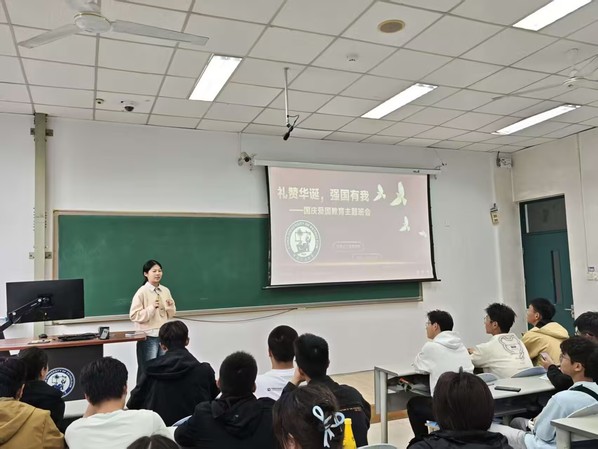 为了纪念中国人民抗日战争暨世界反法西斯战争胜利80周年,加强同学们对于爱国主义精神的认知,10月17日,化工2503班于南堂102开展了以“礼赞华诞,强国有我”为主题的爱国教育班会活动。本次班会活动由2503班团支书王澜主持,以宣传爱国精神为中心点,意在鼓励同学们弘扬爱国主义精神,同时强调将个人理想与国家发展相融合。