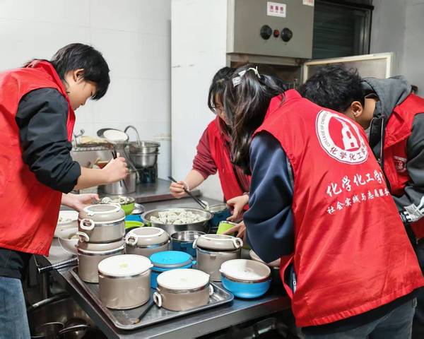 片刻后,志愿者们在刘阿姨的指导下快速将饺子捞起,沥干水分后分装到提前准备好的保温餐盒中——每个餐盒里装15个饺子,刚好够每一位老人吃一顿,餐盒外侧还贴着手写的便签,上面写着“趁热食用”“小心烫口”等温馨提示。同学们小心翼翼地将这一份“温暖的关心与祝福”放进专门的保温手提袋里。随后,10名同学分成3组,每组带着2份饺子,按照提前规划好的路线出发。