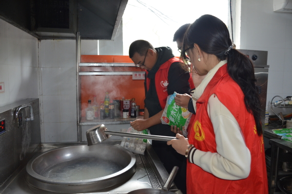 18日上午9时,志愿者们就陆续来到社区活动中心的厨房,开始了准备工作:帮老人给花草浇水,晒太阳,擦桌子,扫地……在大家有条不紊的工作下,厨房内已然被打扫得一尘不染,筷子、保温盒等餐具具也提前用开水细细烫过消毒。团支书张殿钧、班长田倍佳负责外出采购食。在仔细考虑过老人们少糖少盐的饮食习惯后,他们选择给老人送去热腾腾的鸡蛋韭菜馅饺子。