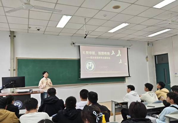 为了纪念中国人民抗日战争暨世界反法西斯战争胜利80周年,加强同学们对于爱国主义精神的认知,10月17日,化工2503班于南堂102开展了以“礼赞华诞,强国有我”为主题的爱国教育班会活动。本次班会活动由2503班团支书王澜主持,以宣传爱国精神为中心点,意在鼓励同学们弘扬爱国主义精神,同时强调将个人理想与国家发展相融合。