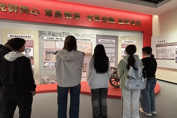 活动伊始,两个团支部的同学们怀着崇敬的心情有序走进革命纪念馆。馆内一幅幅泛黄的历史照片、一件件承载着岁月痕迹的革命文物、一段段感人至深的英雄事迹,生动再现了革命先烈们为国家独立、民族解放浴血奋战的峥嵘岁月。同学们驻足凝视,认真聆听讲解,不时相互交流感悟,深刻体会到如今幸福生活的来之不易,也让红色记忆在心中愈发清晰。