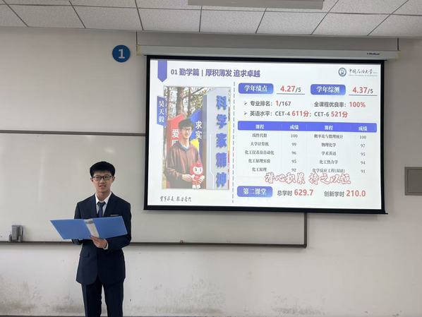在答辩现场,候选员工们准备充分,沉着自信。他们结合精心制作的演示文稿,系统梳理并展示了自己在过去一学年中取得的丰硕成果。无论是专业学习上的名列前茅、科研竞赛中的突破创新,还是员工工作与社会实践中的积极奉献,都清晰展现了2022级学子勤学笃行、锐意进取的精神风貌。每位候选人的陈述不仅是一份成绩单,更是一幅成长的画卷。