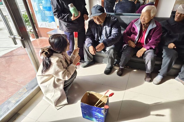 和老人一起玩游戏 刘奕呈摄