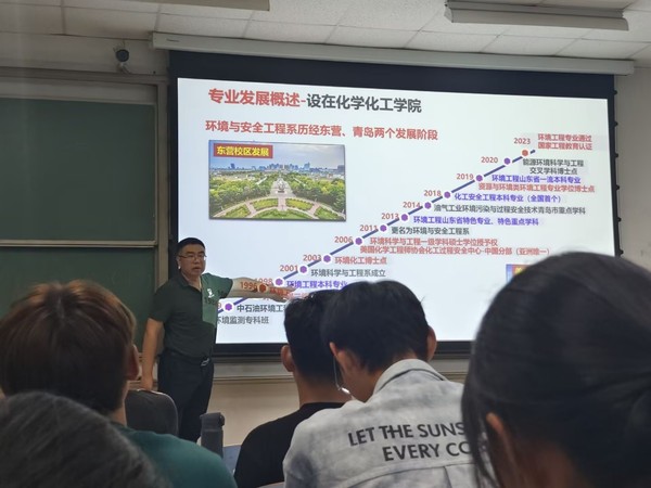 为强化教育实效,学院在每场介绍会中均融入互动交流与个性化指引环节。环境工程专业介绍会设置专场答疑,李石主任与郑临奥员工结合自身经历,针对“科研入门”“跨领域发展”等疑问细致解答;化工与制药类专业介绍会中,学院结合化工行业安全特性,特别强调“实践中的安全规范意识”,为新生筑牢职业安全根基;应用化学专业介绍会则立足时代趋势,鼓励新生挖掘专业“跨界融合潜力”,主动对接学院科研平台参与项目,培养核心竞争力。