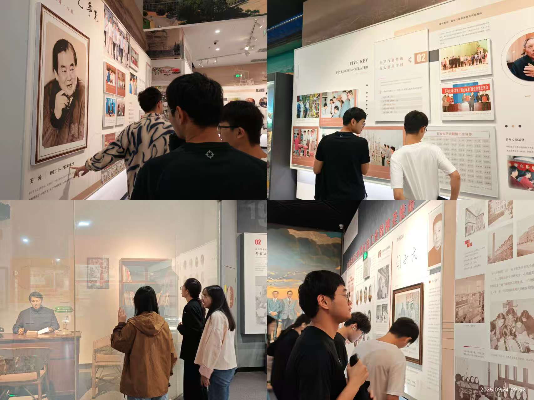 在参观过程中,讲解员系统介绍了学校自北京石油学院时期至今70余年的发展脉络与建设成就。从“家国同心、育才兴邦”的创校初心,到“追求卓越、奋进一流”的当代追求,新生们通过展陈的珍贵照片、文献资料和实物档案,深切感受学校波澜壮阔的发展历程中凝聚的治学精神与家国情怀。一代代石大人艰苦奋斗、能源报国的感人事迹,生动诠释了“惟真惟实”的校训内涵,激发了新生的责任担当意识。
