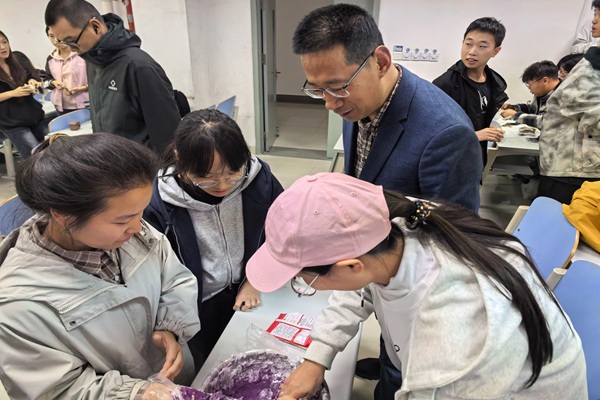 刘义老师在指导同学们和面 冯涛摄