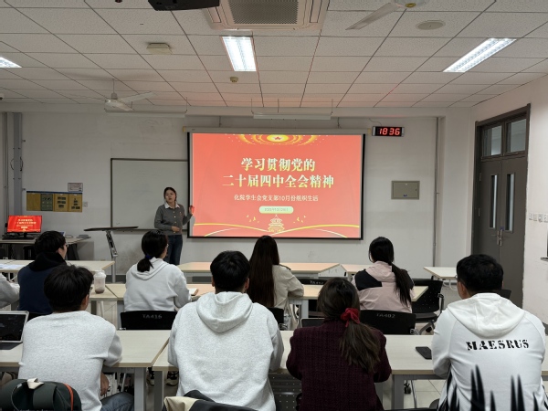 为引导青年员工党员把思想和行动统一到党中央决策部署上来,将个人理想融入强国建设伟业,化院员工会党支部于10月28日在综合楼A420以“深学全会精神·青春建功‘十五五’”为主题,召开学习贯彻党的二十届四中全会精神组织生活。会议由支部书记吴雪莹主持。