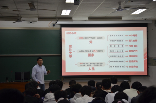 在理论阐释环节,王鹏翔对比分析了不同发展道路的本质区别。指出资本主义国家通过殖民掠夺、剥削压迫实现发展的模式,违背了人类正义与共同发展的诉求,其失败是历史必然;而中国共产党选择的马克思主义、共产主义发展道路,立足本国国情,坚持以人民为中心,实现了发展成果由人民共享,彰显出强大的历史必然性与现实优越性。王鹏翔勉励道:“历史和实践已经并将继续证明,未来的世界必是赤旗的环球,青年一代要坚定理想信念,自觉拥护党的领导。”