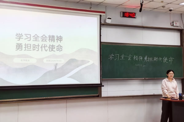为深入学习贯彻党的二十届四中全会精神,引导青年学子准确把握时代脉搏,11月20日晚,化学拔尖2401团支部与化学拔尖2501团支部联合开展了以“学习全会精神,勇担时代使命”为主题的组织化学习活动。本次活动由化学拔尖2501团支部团支书赵婧宇主持,两支部全体成员参加学习。