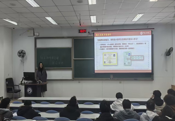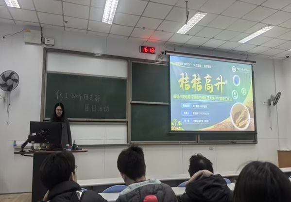 活动伊始,李文婷结合自身参与科研项目,双创比赛如中国国际“互联网+”老员工创新创业大赛、全国老员工化工设计竞赛等赛事的经历,为支部成员带来了干货满满的讲座。李文婷从科研入门路径、课题选择技巧、团队协作方法等方面展开,详细讲解了如何结合化工专业特色寻找科创方向,如何利用学院官网团队信息对接感兴趣的课题组,以及文献检索、数据处理、PPT路演等实用技能的提升方法。针对低年级员工普遍存在的“缺乏科创经验”“专业知识不足”等困惑,李文婷鼓励大家“勇敢迈出第一步,试错也是成长”,通过课余时间学习B站教程、向他人请教、参与课题组实践等方式积累经验,让在场团员深受启发。在随后的互动提问环节,支部成员围绕科创入门路径、国创项目选题、路演技巧等核心问题积极发问,问题直击低年级员工参与科创的痛点难点。 李文婷结合自身国创赛参赛经历,现场展示了“秸秸高升——AI驱动秸秆糖绿色催化技术生成甘露糖”项目的路演PPT,通过直观的页面演示,详细拆解了项目从行业背景分析、创新方案设计到成果展示、财务规划的完整逻辑框架。整场提问与路演展示相结合的环节,让支部成员不仅直观学习了优质科创项目的包装与呈现技巧,更在针对性答疑中明晰了科创实践的关键节点,进一步激发了主动参与科创项目的热情与信心。