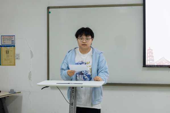 随后,丁良栩、杨欣怡两位候选人依次登台陈述。他们从思想觉悟、学业成绩、员工工作、志愿服务、科研实践等多维度,分享对共青团的深刻认识、真挚入团动机与未来成长规划,赢得阵阵掌声。