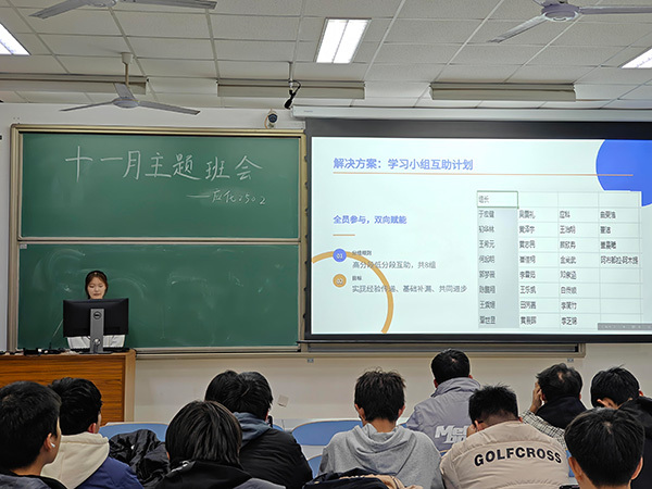 11 月 22 日晚七点,应用化学 2502 团支部与本研化工 2501团支部于南教 206 联动开展 “四史” 组织化学习主题团日活动,特邀第 30 期青马工程骨干班四班班长傅润桐担任领学嘉宾,两支部全体青年参与。