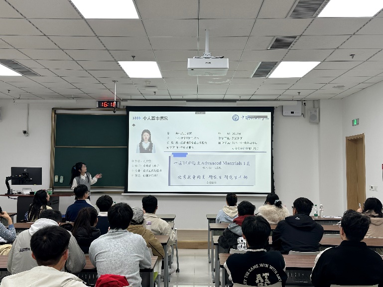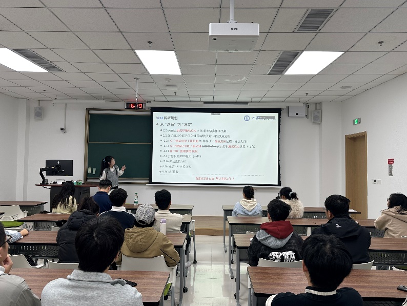 2024 级刘营营同学以“从选题到发表” 为核心主线,复盘了其在国际顶级期刊《Advanced Materials》发表论文的完整历程。她着重强调科研规划与时间管理的核心价值,建议同学们把握精力最充沛的黄金时段攻克核心任务,通过定期复盘实验过程、沉淀思考成果,持续优化研究路径、提升科研效率。此外,她还分享了平衡科研、员工工作与个人爱好的实用技巧,鼓励大家以积极平稳的心态面对研究生生活的多元挑战,在张弛有度中保持成长动力。