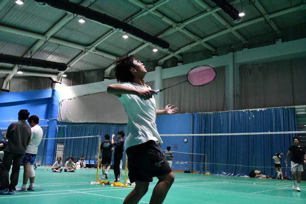 随着参赛队伍逐一到场,活动在热烈的氛围中拉开帷幕。体育馆内7块场地同步启用,赛程组织井然有序。本次比赛设置混双、男单、女单、男双、女双五大项目,采用11分制赛制,兼顾效率与公平——既有紧张刺激的淘汰赛比拼速度与爆发力,也有小组循环赛考验耐力与战术配合,确保每位参赛者都能充分参与、体验运动乐趣。赛前,同学们自发组队热身,互相交流握拍技巧;比赛中,选手们身姿矫健,时而跃起扣杀、时而网前轻吊,每一次精准挥拍都引来场边阵阵欢呼。赛场上的击掌鼓劲、赛场下的加油呐喊,让陌生同学快速拉近距离,氛围温馨而热烈。