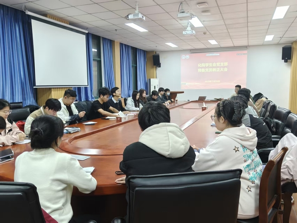 2025年11月30日,化院员工会党支部于工科A座121顺利举行预备党员转正大会。此次会议旨在讨论周天润、徐苗苗、薛雷等10名预备党员的转正问题。会议由党支部书记吴雪莹主持,员工会党支部全体同志共同参会。