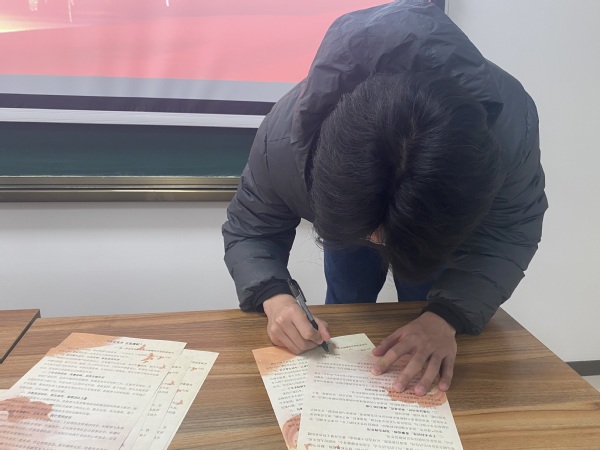 签订承诺书前,甄玉杰、姜潇和刘在伟向各班级党员们介绍活动的目标和意义。一名党员,就是一面旗帜;一句承诺,就是一份责任;一份责任就是一种践行。作为员工党员,就要将党员身份亮出来,将党员承诺说出来,推行党员承诺是保持员工党员先进性制度化和常态化的重要措施,是发挥先锋模范带头作用的有效保障,更是接受所有人的监督、提升自我的必然选择,每一名党员都要兑现自己的承诺,以实际行动带领同学们共同进步。