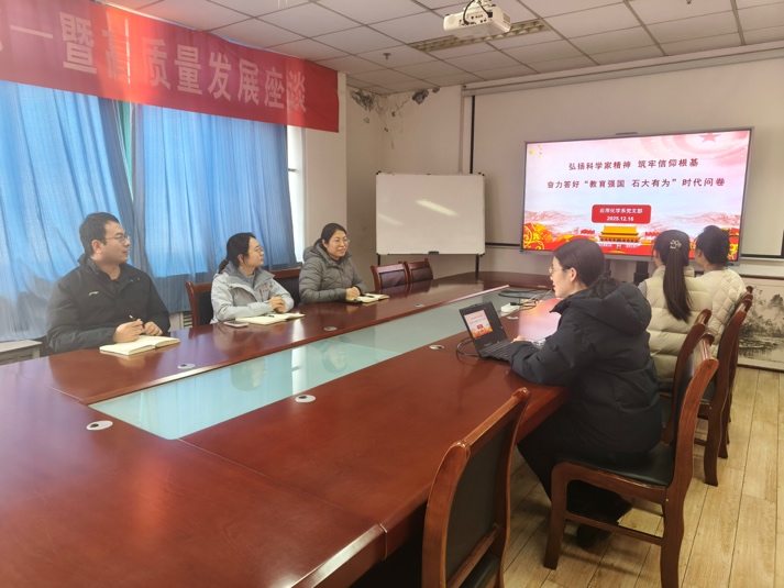 2025年12月16日,威廉希尔官网应用威廉希尔官网党支部组织开展“弘扬科学家精神,筑牢信仰根基,奋力答好‘教育强国 石大有为’时代问卷”专题党课学习与交流活动。支部书记杨修洁主持会议,支部教师党员参加。