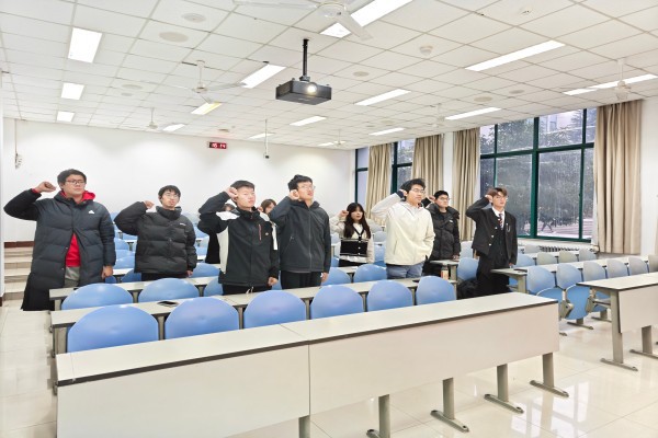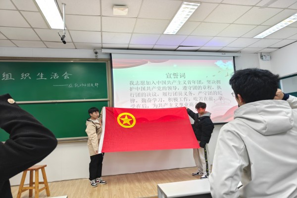 随后李文轩作指导讲话。她充分肯定了本次组织生活会的成效,同时针对支部活动开展提出具体建议:后续支部活动可向学长学姐借鉴活动开展经验,兼顾同学需求与活动多样性;也可依托应化专业团队资源,邀请领域内深耕的教师开展专题讲座,将专业内容融入支部活动,让活动内容更丰富、更贴合团员实际需求。会议最后,全体团员起立重温入团誓词,铮铮誓言进一步强化团员的身份认同与责任担当。