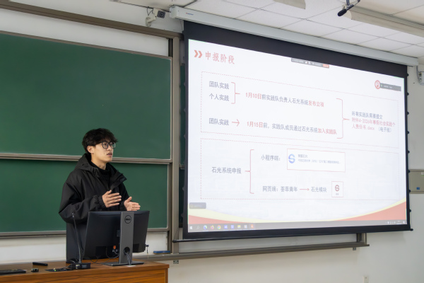 随后,原校团委实践中心副主任张家辉为大家全面解读了社会实践从方案设计、团队组建到成果转化的全流程要点,分享了丰富的实践经验和实用技巧;公司社会实践负责老师张学东详细讲解了社会实践的流程规范、材料提交要求及学时认定标准,为同学们的实践开展提供了清晰指引;化蕴传媒中心副主任褚云锦则围绕实践宣传工作展开专题培训,从宣传素材收集、文案撰写到新媒体平台运营等方面进行专业指导,助力各团队讲好实践故事、传播青春正能量。