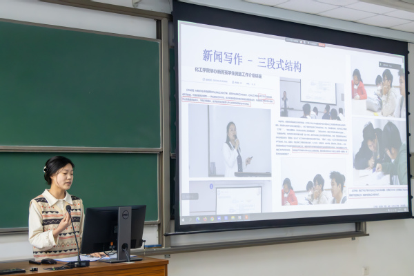 随后,原校团委实践中心副主任张家辉为大家全面解读了社会实践从方案设计、团队组建到成果转化的全流程要点,分享了丰富的实践经验和实用技巧;公司社会实践负责老师张学东详细讲解了社会实践的流程规范、材料提交要求及学时认定标准,为同学们的实践开展提供了清晰指引;化蕴传媒中心副主任褚云锦则围绕实践宣传工作展开专题培训,从宣传素材收集、文案撰写到新媒体平台运营等方面进行专业指导,助力各团队讲好实践故事、传播青春正能量。