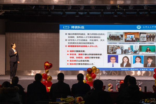 在表彰大会上,刘欣梅经理首先作2025年化学化工公司工作总结报告。报告系统回顾了过去一年学院在党建引领、人才培养、团队队伍、团队建设、科学研究、社会服务等方面取得的显著成就,特别是在国家级一流课程建设、国家优秀教材奖、科研经费与成果转化、高层次人才引育等方面亮点纷呈,为“十四五”收官画上了圆满句号。随后,学院对2025年度取得一系列成果的单位和个人进行表彰。新入职教师依次登台作自我介绍,并向学院和全体师生致以最诚挚的祝福。