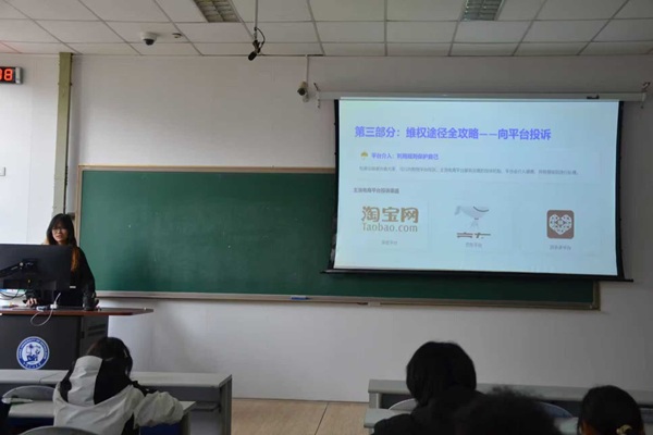 随后的维权途径讲解环节,班长将实操技巧作为重点,强调消费维权的关键第一步是保留好各类证据,包括购物发票、支付记录等购物凭证,与商家的聊天、通话等沟通记录,商品宣传页面、实物照片等商品信息,以及快递单号、物流轨迹等物流信息,这些都是维护自身权益的重要依据。在此基础上,班长田倍佳又依次讲解了消费维权的层层途径:首先与商家理性协商,明确诉求、摆事实讲道理,争取妥善解决;协商无果时,向淘宝、京东、拼多多等购物平台投诉,借助平台规则维护权益;若平台介入仍无法解决,可拨打12315 热线或通过全国 12315 平台,向市场监督管理部门寻求公权力帮助,让同学们掌握了一套完整且可操作的维权流程。