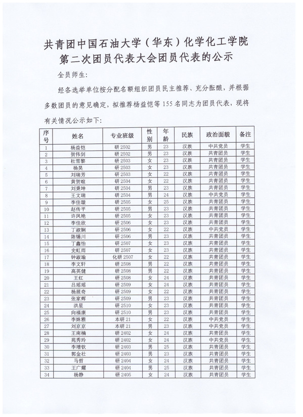 共青团版权所有:威廉希尔(williamhill)官方网站-Official Website第二次团员代表大会团员代表的公示