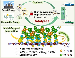 Ø 金属-载体相互作用促进Ni₃P/g-C₃N₄界面电子转移提升气相甲酸脱氢性能